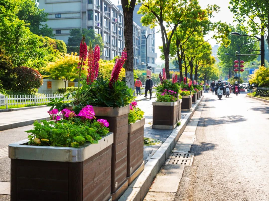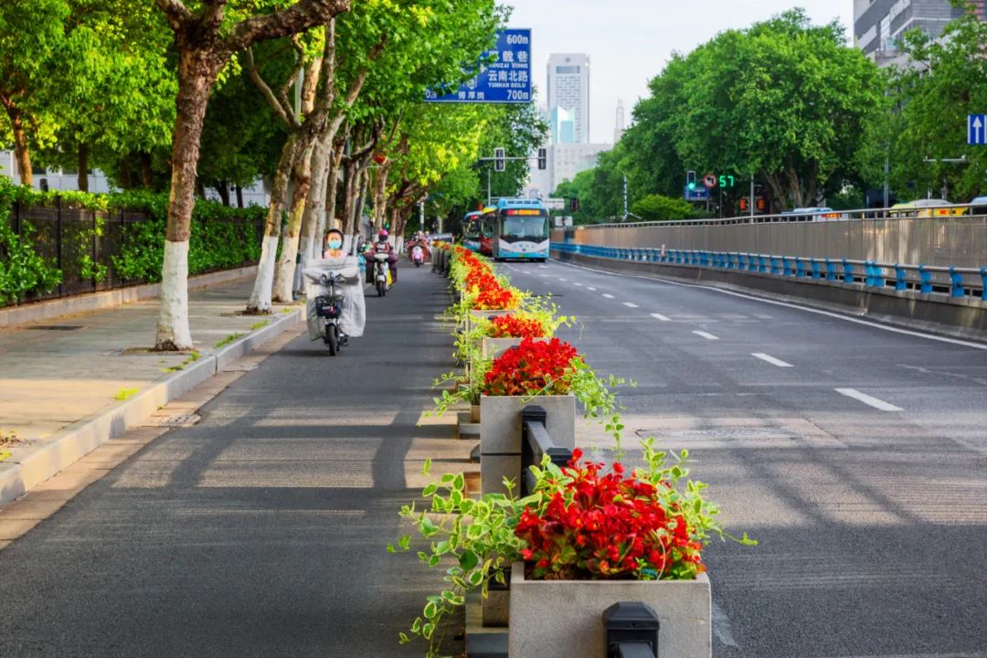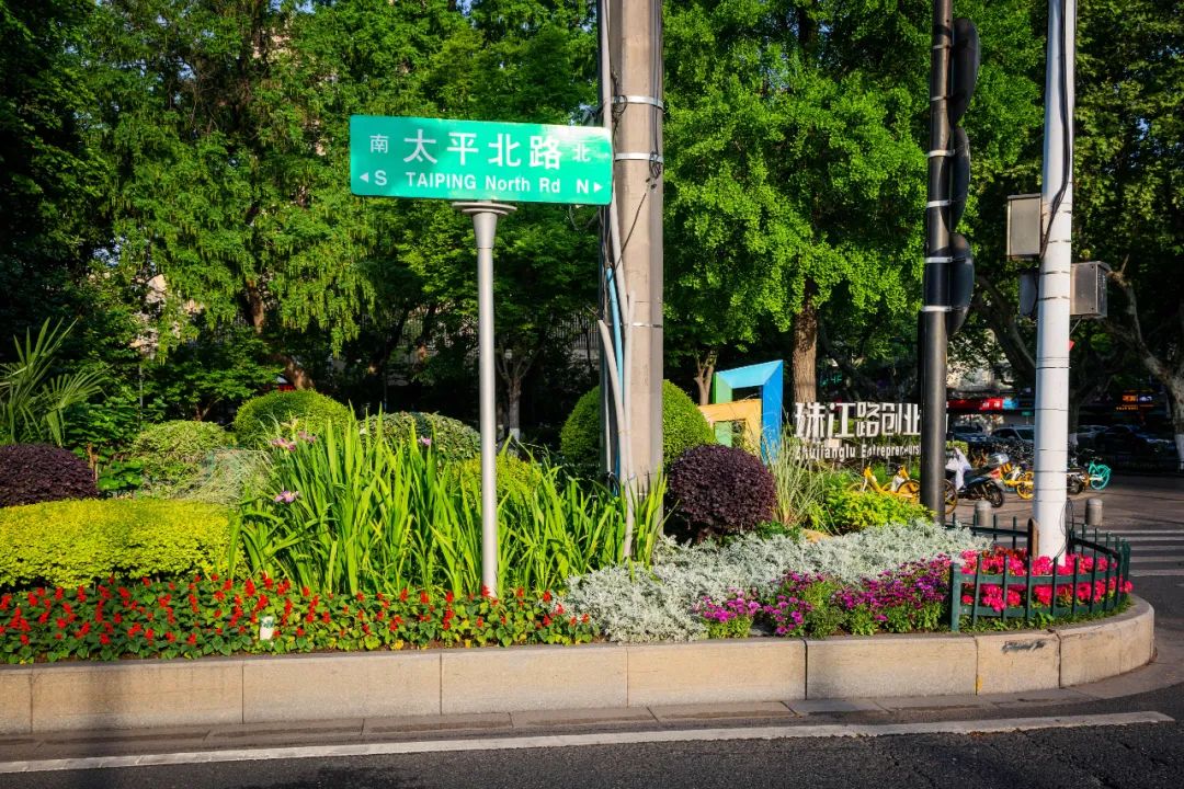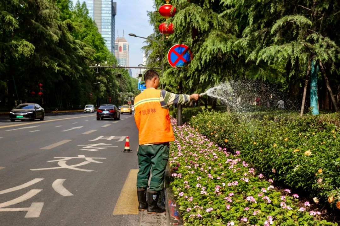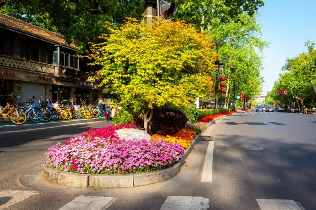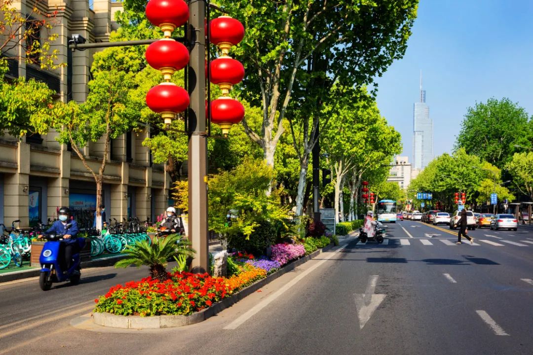 對市府門前路、長江路、九華山站、荔枝廣場、中山門城墻等重要節(jié)點(diǎn)容器花箱、花球、燈桿掛花及新街口東北角綠地進(jìn)行花卉布置,選用朱蕉、羽扇豆、毛地黃、天竺葵、桑貝斯鳳仙、金雀、澳洲朱蕉、變?nèi)~木、四季海棠、鼠尾草、歐石竹、垂掛牽牛等花卉,以色彩鮮明、層次豐富的設(shè)計感,裝扮城市街角,營造濃厚的節(jié)日氣氛。