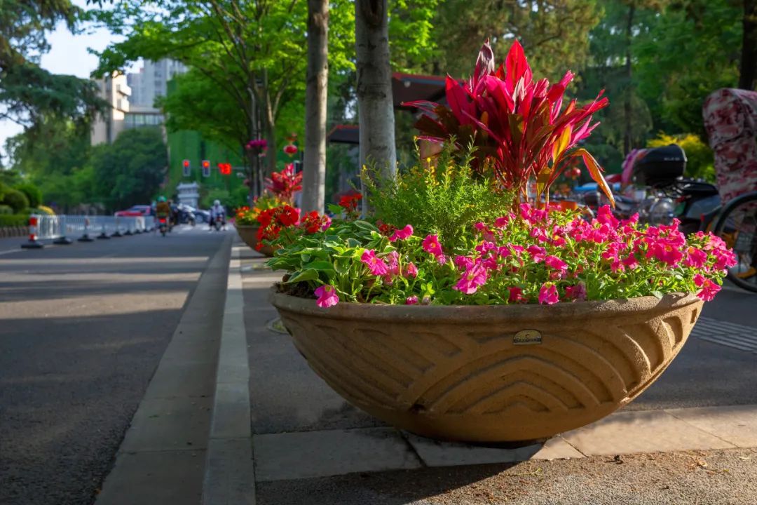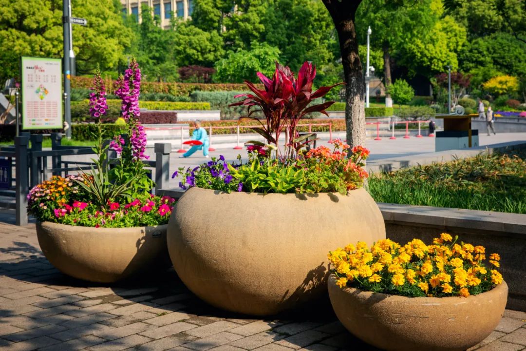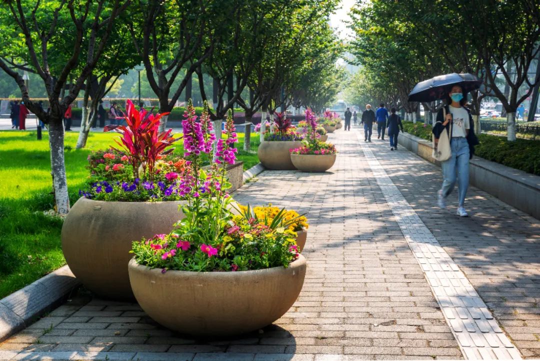 鼓樓市民廣場花境、組合花碗、花傘等繼續(xù)以色彩豐富、花卉進(jìn)行布置,裝扮生機(jī)盎然、環(huán)境宜人的城市客廳。